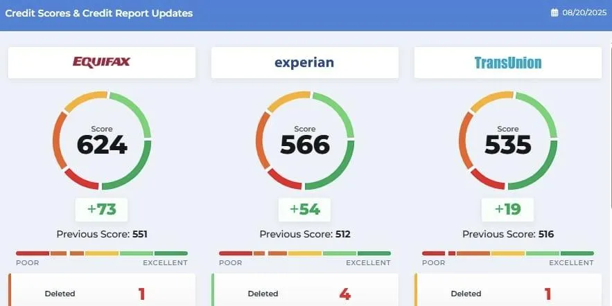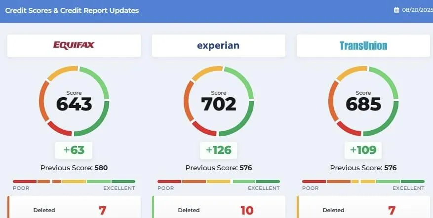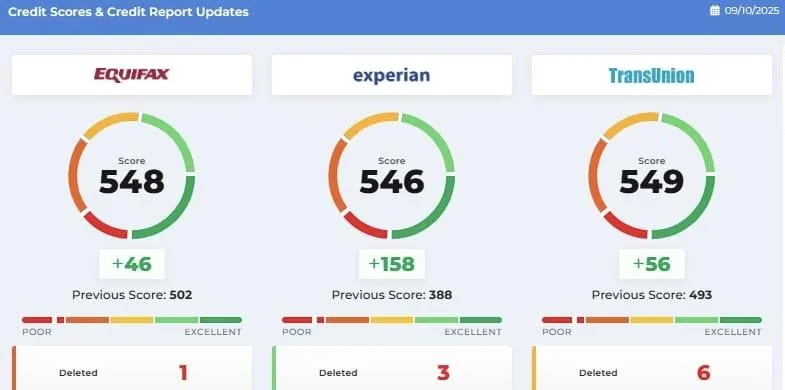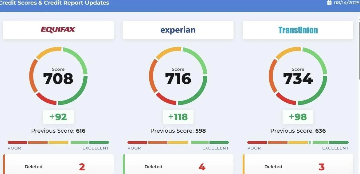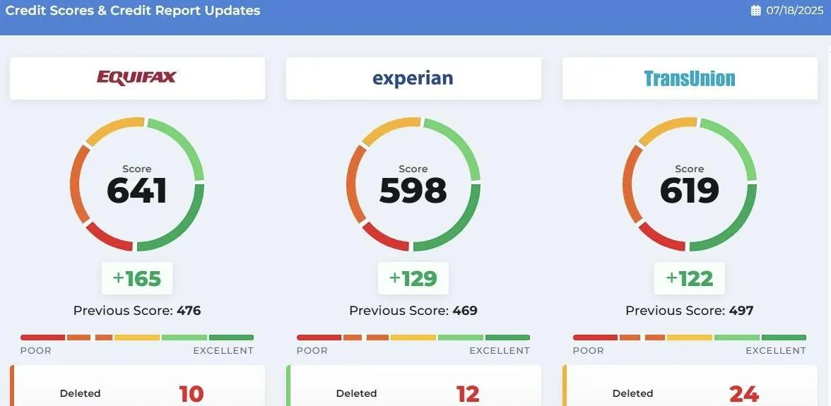 Aggressive disputes across all 3 bureaus with advanced dispute letters.