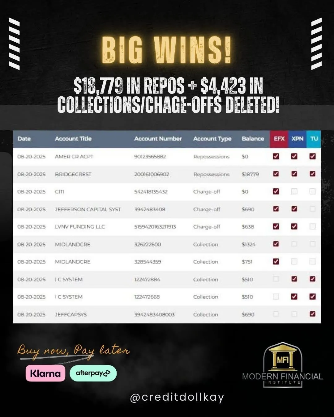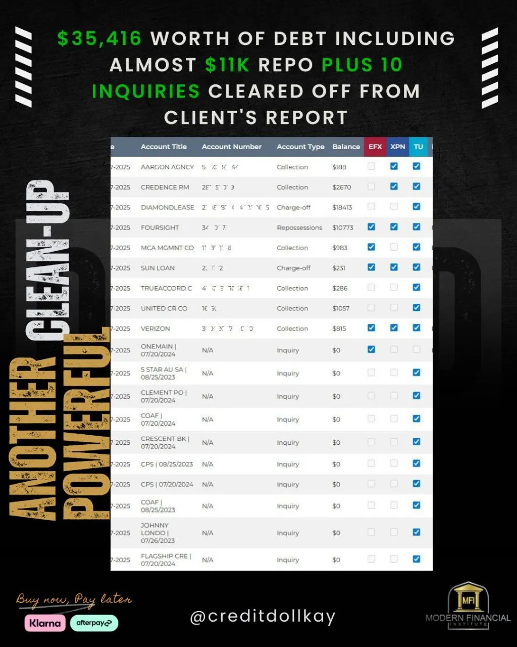 We help remove collections, charge-offs, late payments, bankruptcies, repossessions, inquiries, and more—legally.
